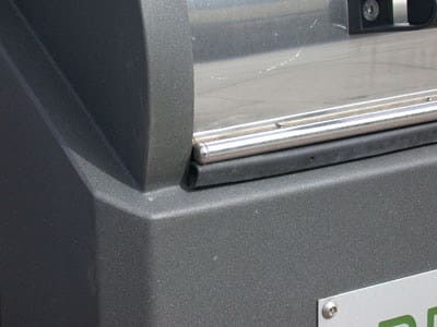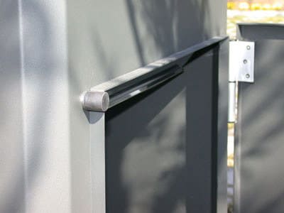 La estructura del buzón tiene la opción de incorporar una puerta de acceso para facilitar el vertido de residuos de grandes cantidades o dimensiones. Esta puerta de acceso se acciona mediante una llave de seguridad que no se puede extraer de la cerradura hasta que la puerta no se encuentra perfectamente cerrada. De esta manera se eliminan los posibles accidentes que podrían ocurrir en el caso de que el usuario no cerrara correctamente la puerta.
